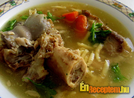 Nagyon szeretem a leveseket, pláne az olyan típusúakat, amik hasonlítanak a húslevesre. Az elkészítési módja is ugyanaz. Jó sok zöldséggel, sok húsos csonttal. Amikor elkészül a leves, mi kiszedjük a jó kis húsos csontokat, és a zöldséget egy üvegtálra, és úgy gőzölgősen leszopogatjuk a csontról a húst. Ennél finomabbat el ...