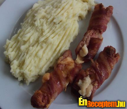Ezt a receptet egy külföldi oldalon láttam először, nagyon megtetszett, mert nagyon szeretem a bacon-ös ételeket. Olyan finom, hogy mind a tíz ujjunkat meg szoktuk nyalni utána. Sokszor nem tudjuk, hogy mit adjunk a vendégeknek, a szendvics és a apró-süti nagyon jó, de ez sokkal ötletesebb.