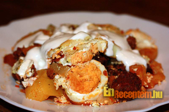 Nem attól lesz magyaros, hogy rakott burgonya helyett rakott krumplinak hívjuk, hanem attól, hogy némileg eltérünk az általános rakott krumpli recepttől. Az alaprecept is majdnem jó (krumpli, kolbász, tojás, tejföl), de pont az az alapanyag és íz hiányzik belőle, amitől számomra az ehetőből, istenivé módosul az élet. Ez pedig nem ...