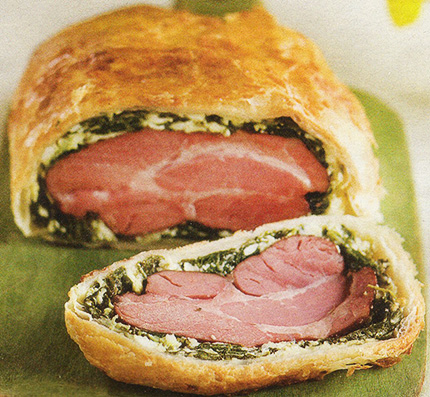RészletekTésztában sült spenótos füstölt tarja