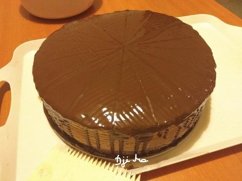 - A csokit olvasszuk fel vízgőz felett, keverjük simára az olajjal, mikor kicsit hűl, és sűrűsödni kezdene, öntsük a torta tetejére, Nem baj ha az oldalára csorog, Mielőtt a csoki megdermedne villával becsíkozhassuk, vagy más díszítést is használhatunk.