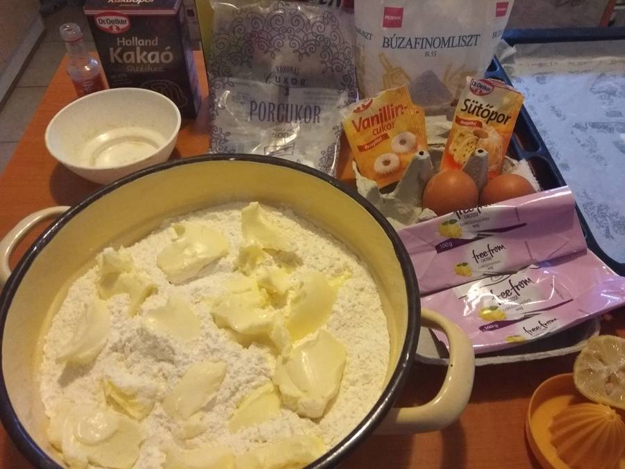 - A puha vajhoz hozzákeverjük a hozzávalókat, és lágy tésztává gyúrjuk.