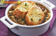 - Tálalás előtt a zöldségek egy részét kiemeljük a levesből szűrőlapáttal és precízen lecsepegtetjük. Zsemleszeleteket vagy bagett szeleteket pirítunk szárazon(!). A pirított szeletekre ízlésesen halmokat helyezünk a lecsepegtetett zöldségekből, megszórjuk reszelt sajttal és sütőben pirosra sütjük.