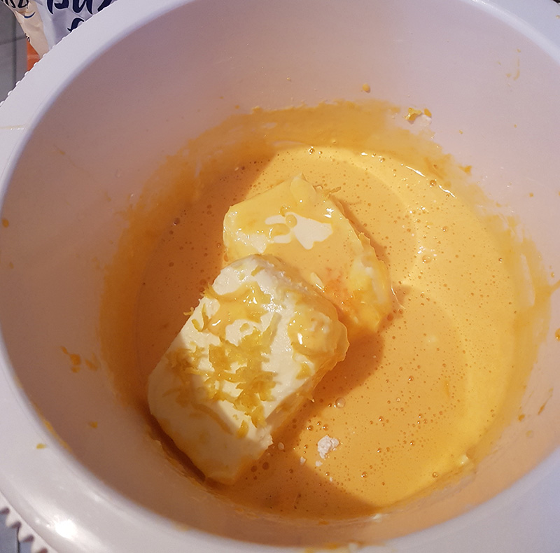 - A tojássárgáját a porcukorral kikeverjük. Majd hozzáadjuk a citrom reszelt héját, valamint a levét, olvasztott vajat, lisztet, sütőport, a majd a kikevert cukros tojást hozzáadagolva, összekeverjük a tésztát.