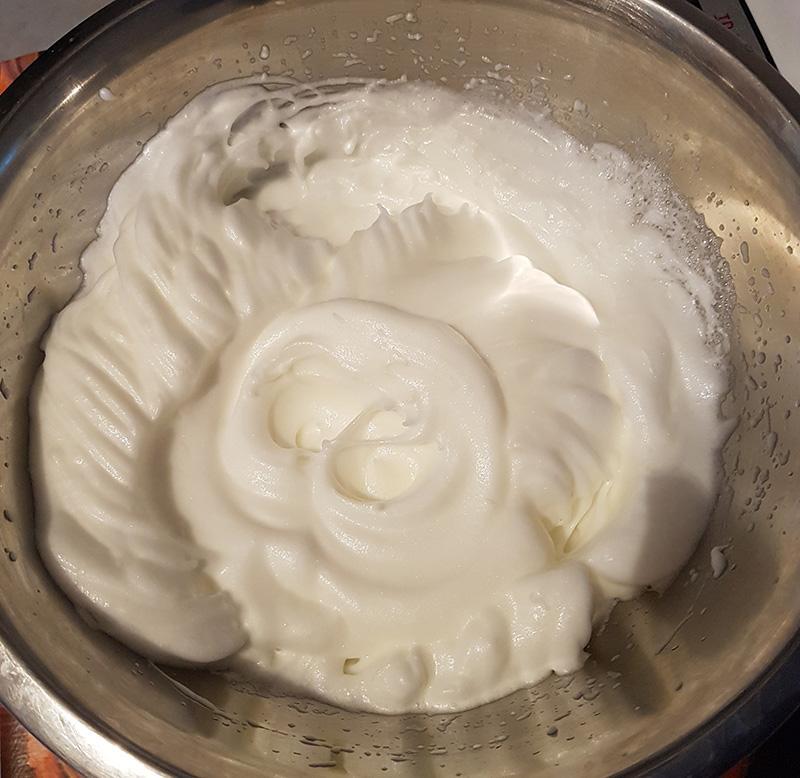 - A kemény habbá felvert tojáshoz hozzáadjuk a cukorral kevert darált diót. Óvatosan, hogy a hab ne essen össze.