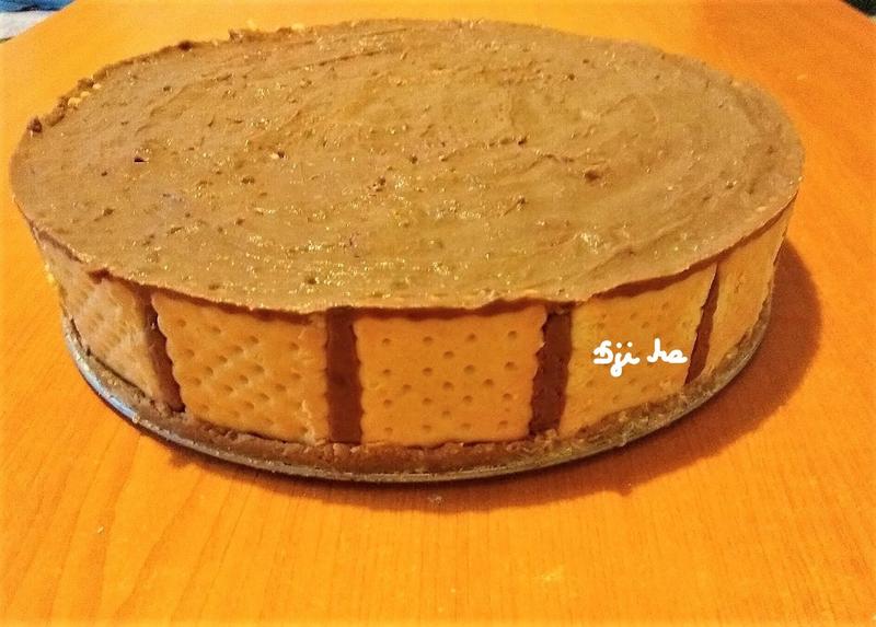 - A kekszeket egy pillanatra megmártsuk langyos tejben, majd körberakjuk a forma oldalát keksszel. A következő sorokat hozzáragasztjuk a krémes keksszel. 1 db tejbe mártott kekszre 1 teáskanál krémet teszünk és hozzáragasztjuk a kekszekhez körbe, amíg meg nem telik. A maradék krémet rákenjük a tetejére, majd pár órára, vagy éjszakára hűtőbe tesszük. Kivesszük a hűtőből, a karimát leemeljük róla. Felvert tejszínhabbal bekenjük és díszítjük.