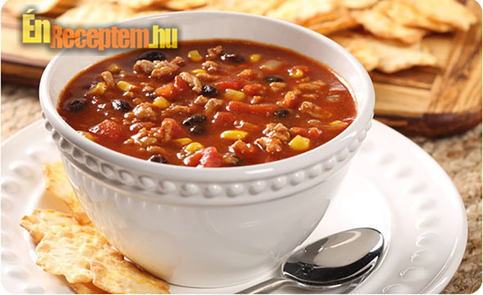 - Ízlés szerint sózzuk, borsozzuk, és végül felforraljuk, majd 15 percig kis lángon készre főzzük. Kukorica chipszel tálaljuk.