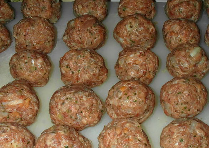 - Majd a húst, tejbe áztatott zsömlét, tojást, reszelt parmezán sajtot, fűszereket, zúzott fokhagymát, finomra vágott vöröshagymát, egy keverőtálba tesszük. Legjobb ha az elkészült masszát 6 órára hűtőbe tesszük hogy az ízek összeérjenek benne.
